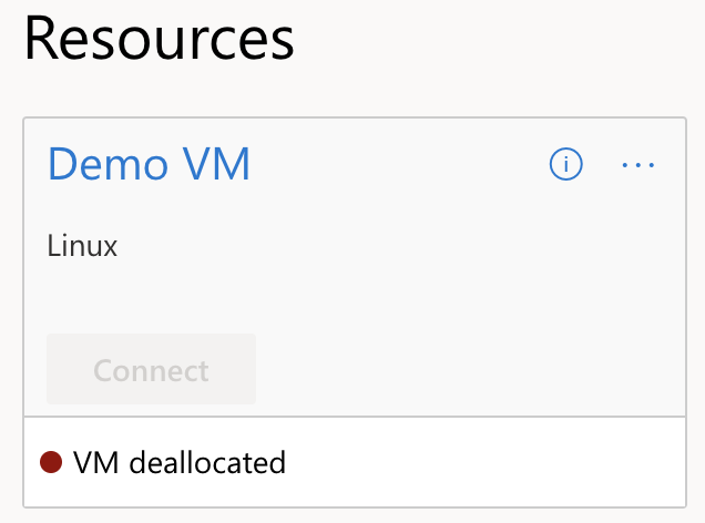 2. It will take a few minutes to take effect and the card should then display 'VM deallocated'.