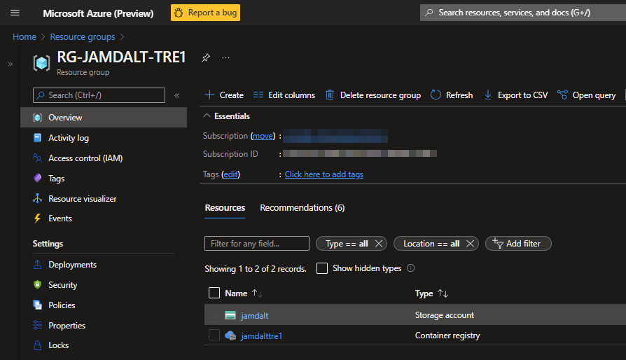 Once an Azure TRE has been provisioned in an Azure Subscription, you will have two Resource Groups: