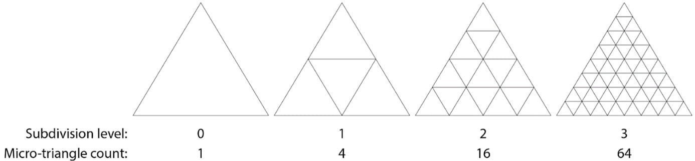 As mentioned above, geometry in a bottom-level acceleration structure can be represented as triangle meshes which use built-in ray-triangle intersection support that passes triangle barycentrics describing the intersection to subsequent shaders.
