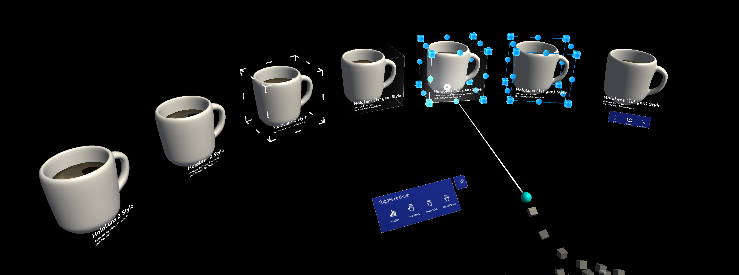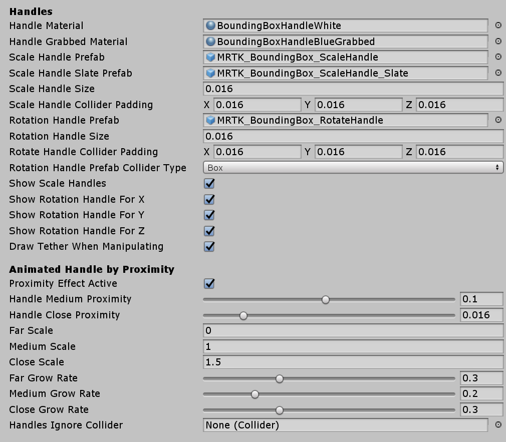 Below are the prefabs, materials, and the scaling values for the HoloLens 2 style bounding box handles. You can find this example in the BoundingBoxExamples scene.