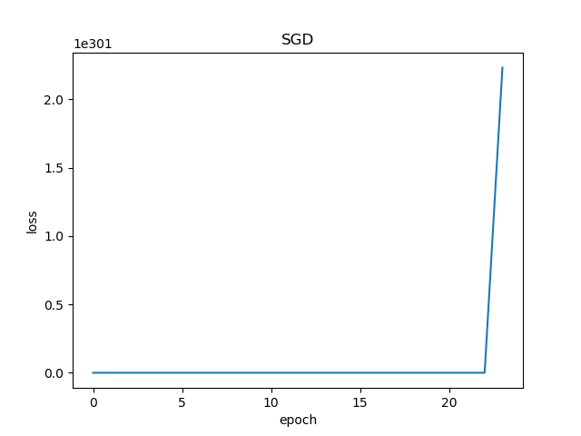 前10次迭代,损失函数值已经达到了6.83e+66,而且越往后运行值越大,最后终于溢出了。下面的损失函数历史记录也表明了这一过程。