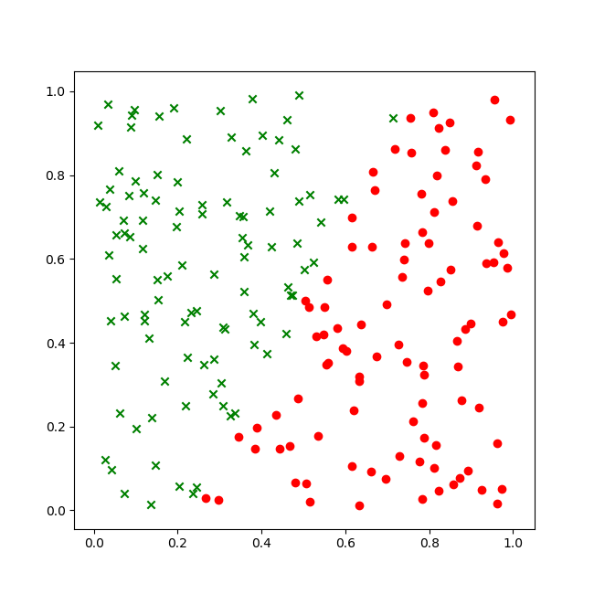 我们在上一章学习了特征归一化的方法。在本例中,中原地区的经纬度坐标其实应该是一个两位数以上的实数,比如 (35.234, -122.455)。为了简化问题,我们已经把它们归一化到 [0,1] 之间了。