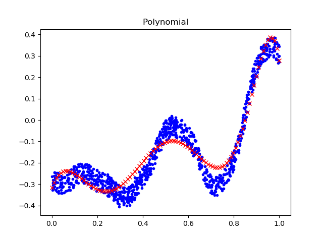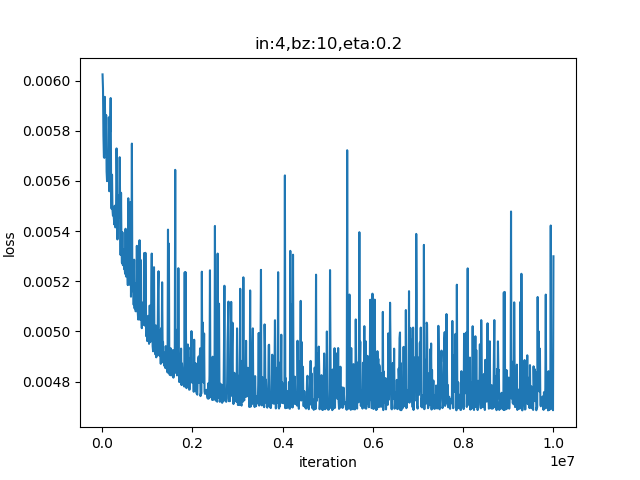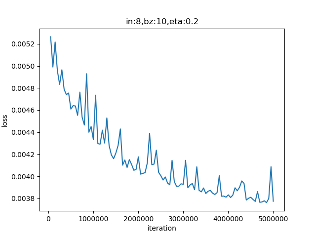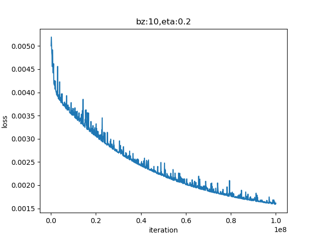 根据以上情况,可以认为8次多项式很有可能得到比较理想的解,所以我们需要增加max_epoch数值,让网络得到充分的训练。好,设置max_epoch=1000000试一下!没错,是一百万次!开始运行后,大家就可以去做些别的事情,一两个小时之后再回来看结果。