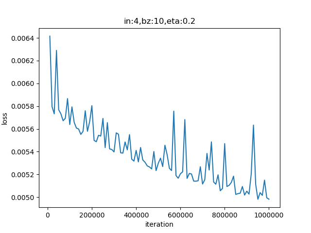 params = HyperParameters(num_input, num_output, eta=0.2, max_epoch=10000, batch_size=10, eps=1e-3, net_type=NetType.Fitting)