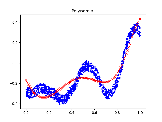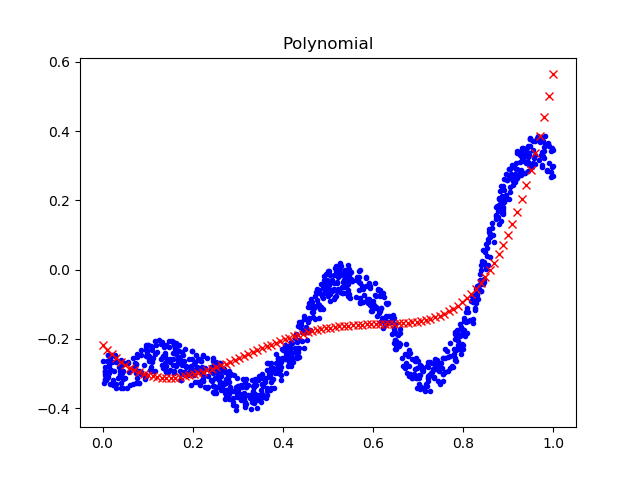 可以看到损失函数值还有下降的空间,拟合情况很糟糕。以下是打印输出结果:
