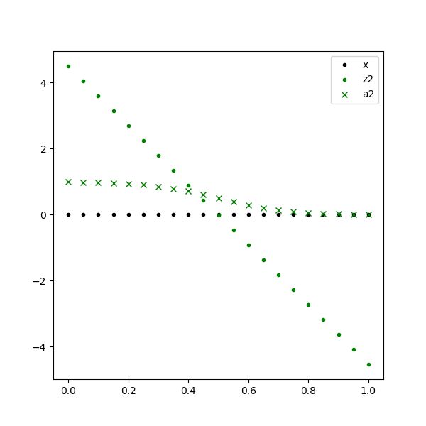 z2还是一条直线,但是经过激活函数后的a2已经明显看出是一条曲线了。