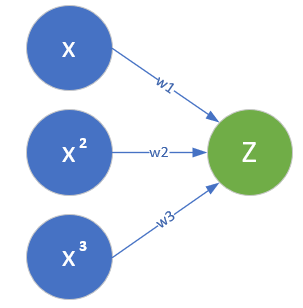左图中,通过人为的方式,给Z的输入增加了x^2和x^3项。