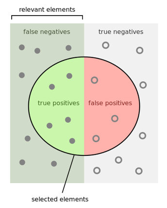 - 在圆圈中的样本是被模型判断为正类的,圆圈之外的样本是被判断为负类的;