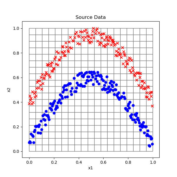 图10-2 呈弧线分布的两类样本数据