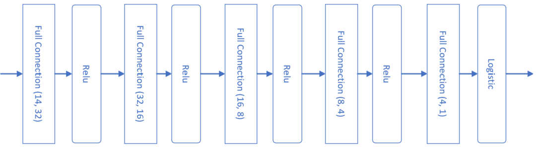 我们搭建一个与14.2一样的网络结构,不同的是为了完成二分类任务,在最后接一个Logistic函数。