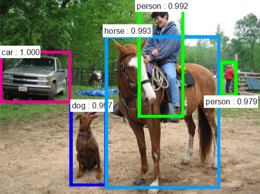 图17-2 识别出一个农场中的车、狗、马、人等物体