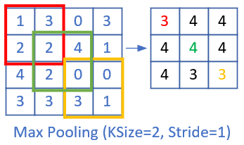 上图是stride=1, size=2x2的情况,可以看到,右侧的结果中,有一大堆的3和4,基本分不开了,所以其池化效果并不好。