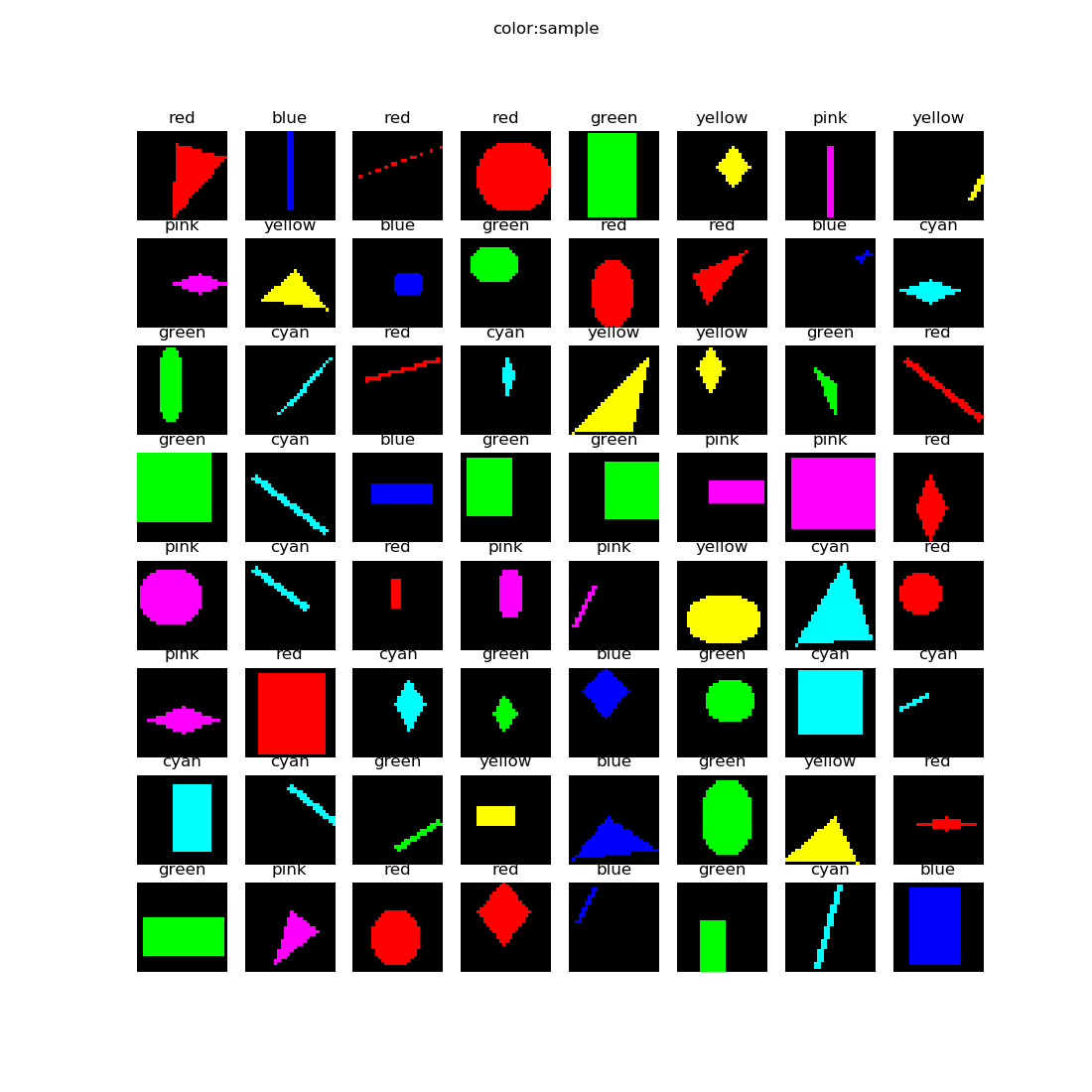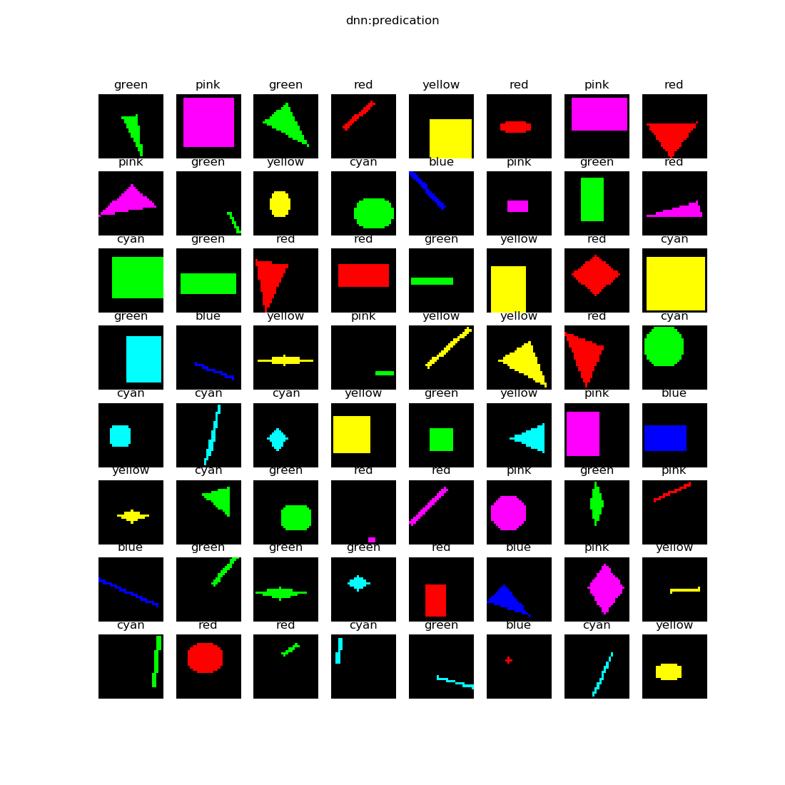 大家知道卷积神经网络可以在图像分类上发挥作用,而一般的图像都是彩色的,也就是说卷积神经网络应该可以判别颜色的。这一节中我们来测试一下颜色分类问题,也就是说,不管几何图形是什么样子的,只针对颜色进行分类。