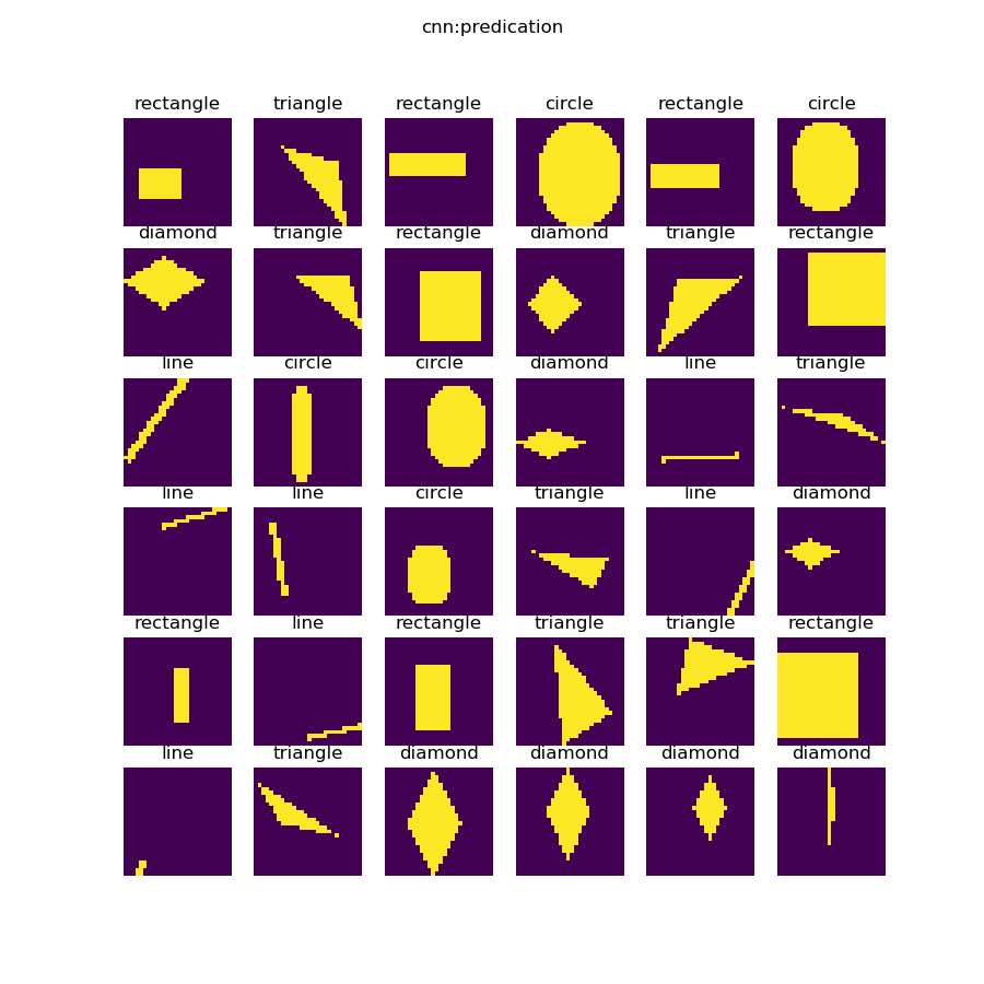 绝大部分样本预测是正确的,只有最后一个样本,看上去应该是一个很扁的三角形,被预测成了菱形。