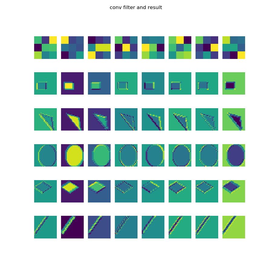 | 卷积核序号 | 作用 | 直线 | 三角形 | 菱形 | 矩形 | 圆形 |