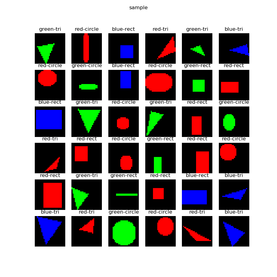 绝大部分样本预测是正确的,但是第3行第2列的样本,应该是green-rect,被预测成green-circle;最后两行的两个green-tri也被预测错了形状,颜色并没有错。