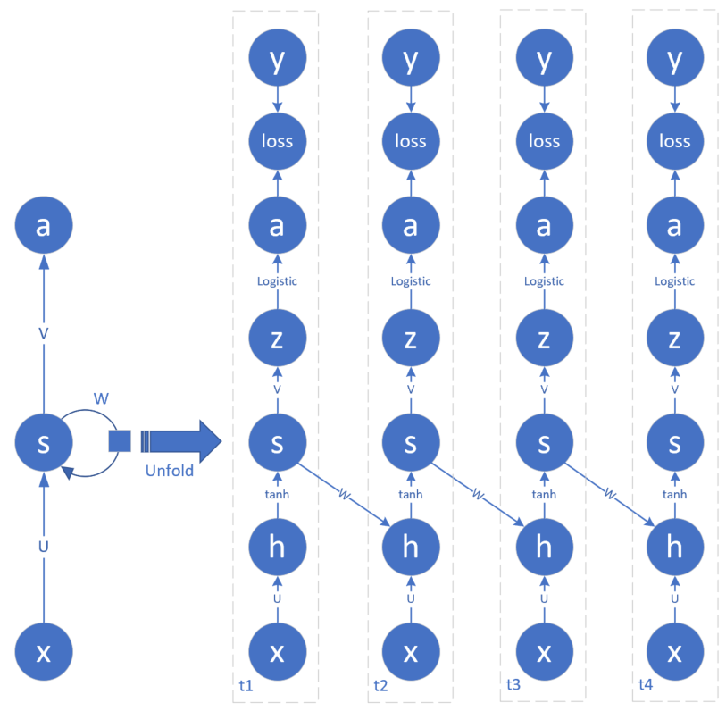 本小节中,我们将学习具有四个时间步的循环神经网络,用于二分类功能。