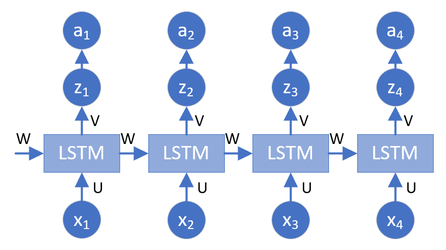 self.lstmcell[i].forward(X[:,i], hp, cp, self.W, self.U, self.bh)
