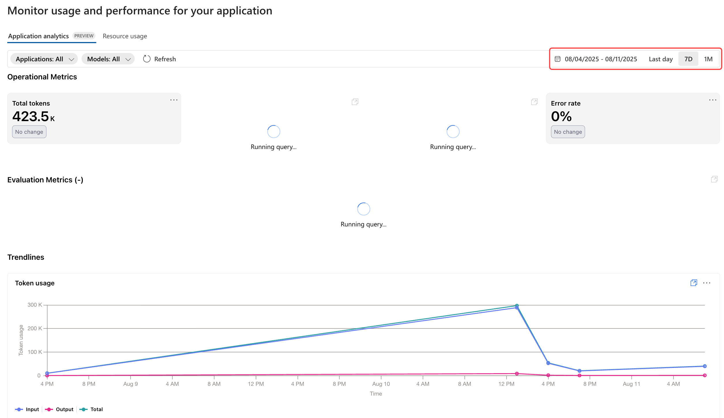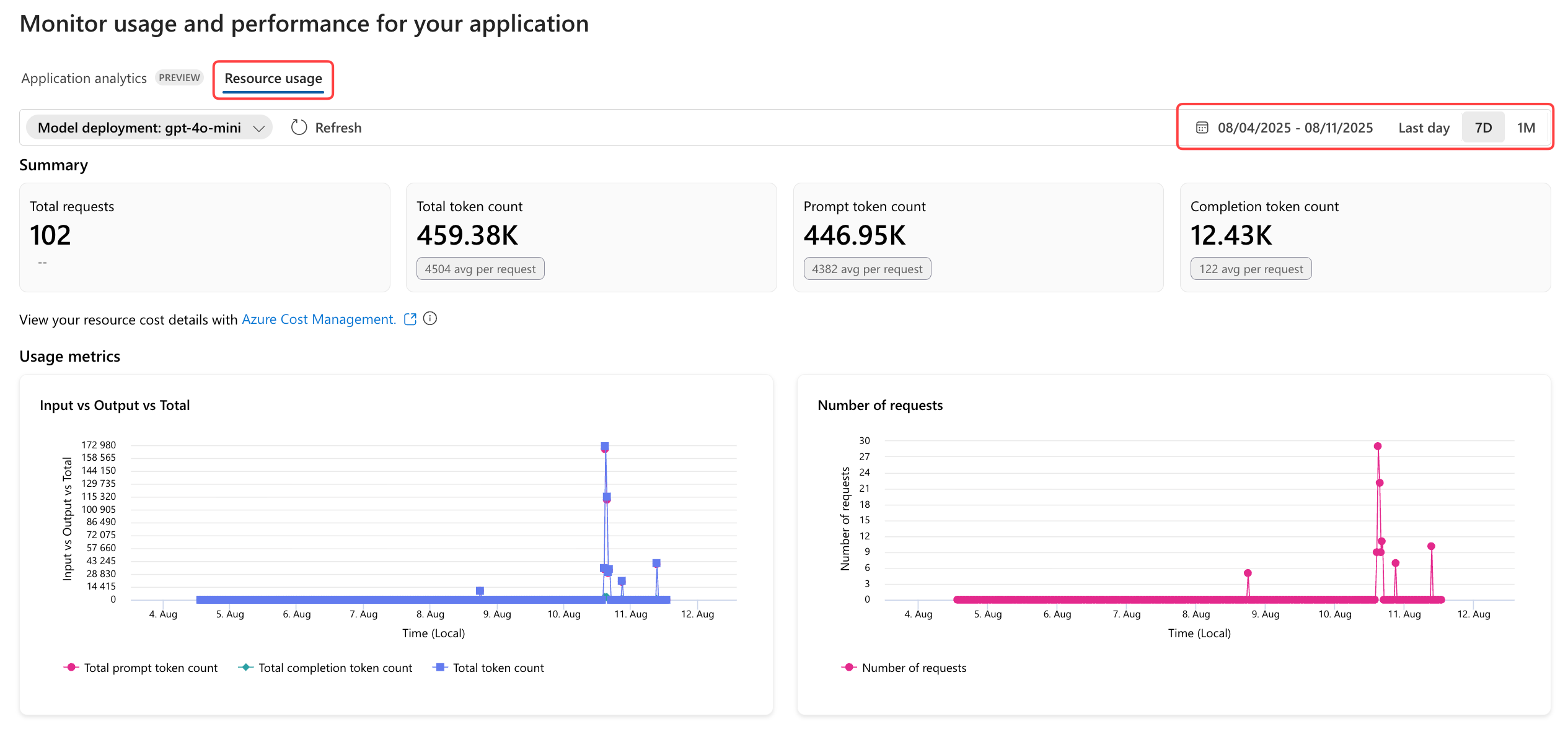 to view detailed metrics about your AI Project's resource consumption. Again, you can filter the data by time range.