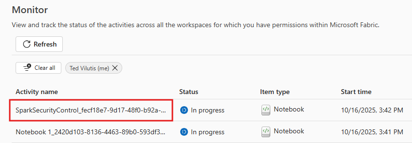 이와 같이 두 환경으로 분리하는 과정은 사용자가 추가 설정이나 작업은 필요 없으며, 자동으로 처리됩니다. Spark 엔진은 작업영역(workspace)에서 실행되는 모든 작업마다 보안 환경을 자동으로 생성하며, 쿼리 부하에 따라 리소스를 동적으로 확장합니다. 쿼리가 실행 중이지 않으면, 성능 최적화와 시작 지연 최소화를 위해 보안 환경은 종료되기 전 최대 5분간 유지됩니다. 사용자는 모니터링 기능에서 보안 환경 작업을 확인할 수 있으며, 해당 작업은 ‘SparkSecurityControl’ 접두사로 표시됩니다.