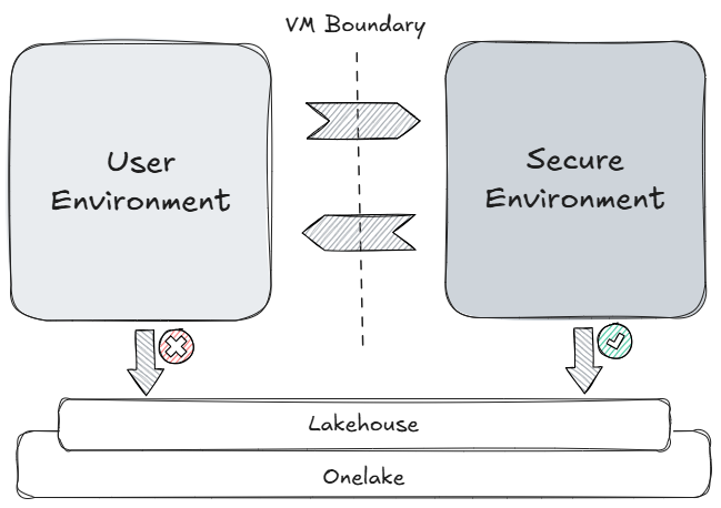 이 한계를 해결하기 위해, Spark 엔지니어링 팀은 성능 저하 없이 Spark에서 안전한 데이터 접근을 가능하게 하는 맞춤형 솔루션을 개발했습니다. 엔진 레벨에서, 작업이 행/열 수준 보안 정책으로 보호된 테이블을 읽어야 하는 경우, 처리 과정은 서로 격리된 두 환경으로 분리됩니다.