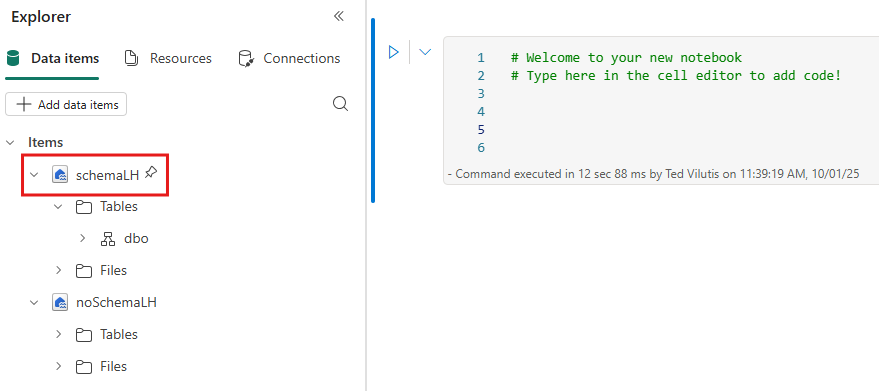 Spark는 스키마가 활성화된 Lakehouse와 비활성화된 Lakehouse 모두에서 행/열 수준 보안 정책을 지원합니다. 단, Spark가 보안 클러스터를 사용하려면, 쿼리하는 대상 Lakehouse가 스키마를 지원하는지 여부와는 관계없이 사용자가 기본 Lakehouse로 스키마가 활성화된 Lakehouse를 고정(pinned) 해야 합니다.