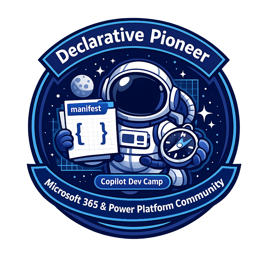 Submit a community sample: Once you have earned any of the badges, submit one or more Microsoft 365 Copilot extensibility samples to the Sample Solution Gallery and prove to yourself and to the whole community what you have learned! You will get a special recognition from the community!