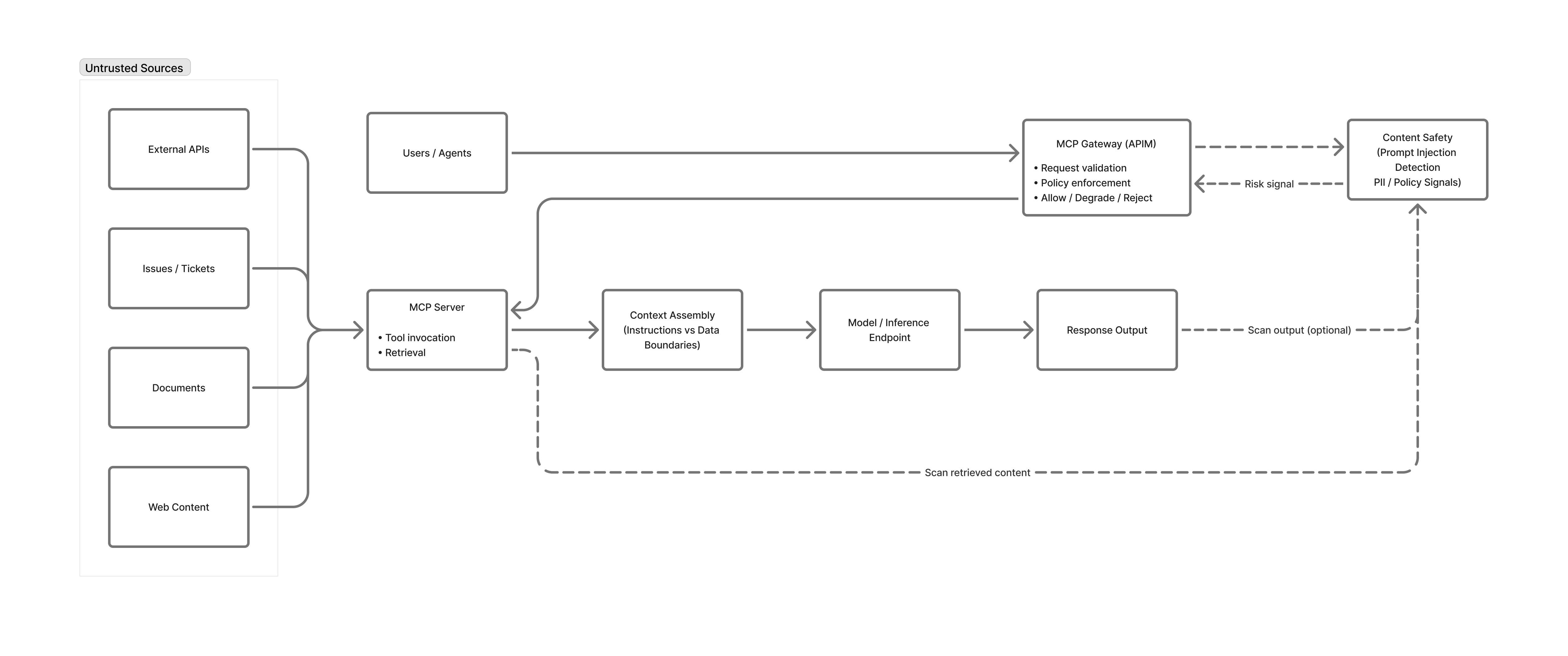 - Enable Azure AI Content Safety Prompt Shield on all untrusted inputs