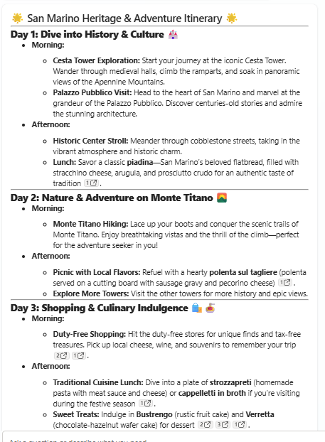 That information can be used to generate a tailored itinerary based on the user’s preferences: