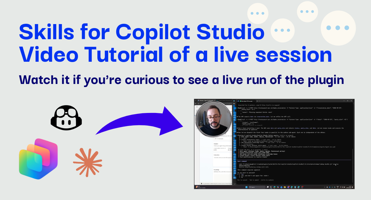 Watch a full live demo of building a complex Copilot Studio agent from scratch using the Claude Code plugin - from cloning to pushing, all in one session.