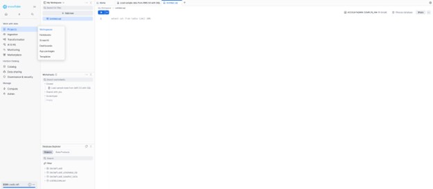 Go to “Projects” → “Workspaces” and create a new SQL window.