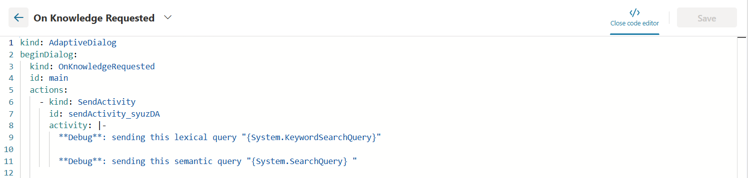 - Enable OnKnowledgeRequested trigger (via YAML as this is not yet in the UI)