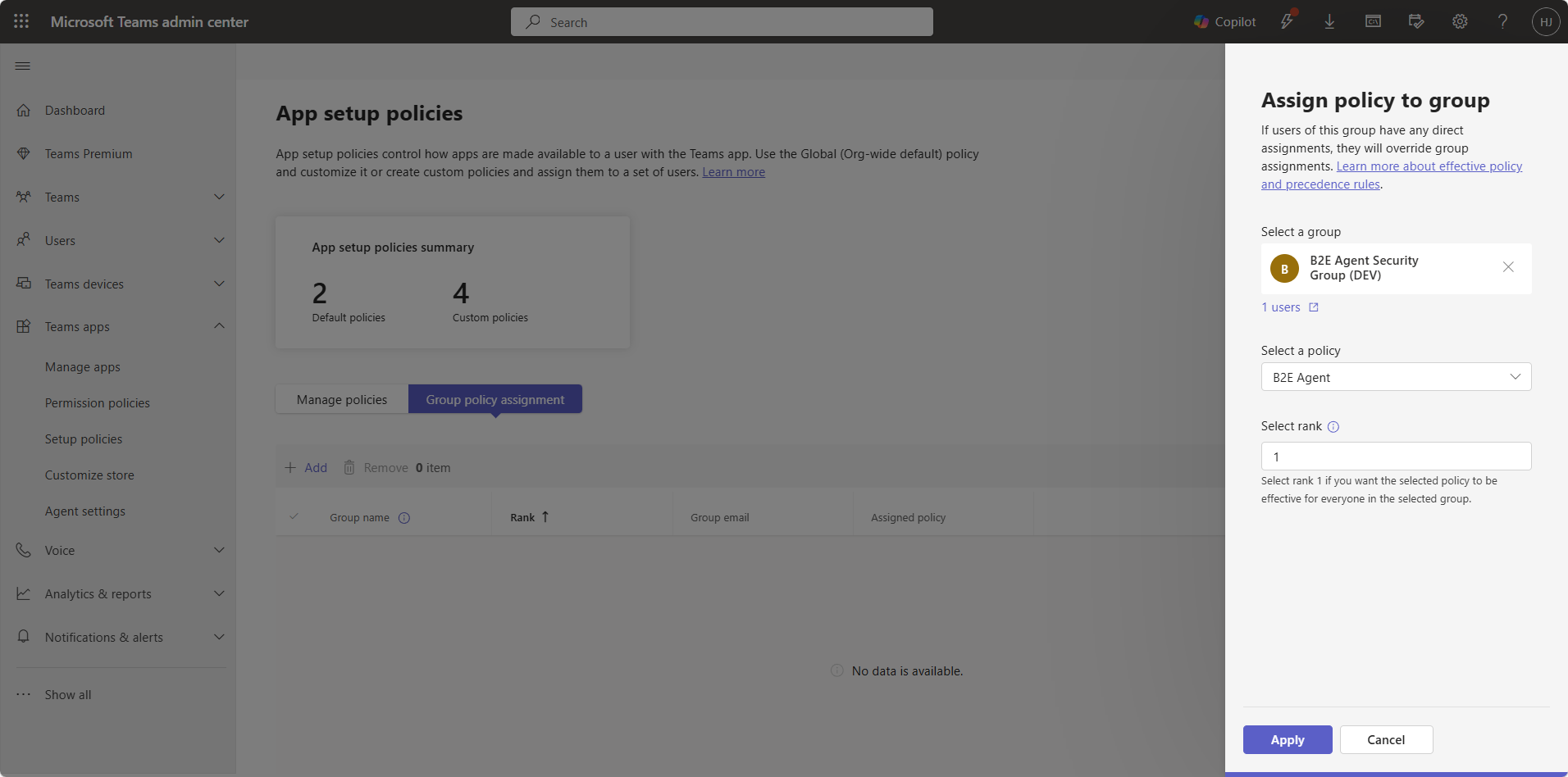 Assigning setup policy to B2E Agent Security Group (DEV)