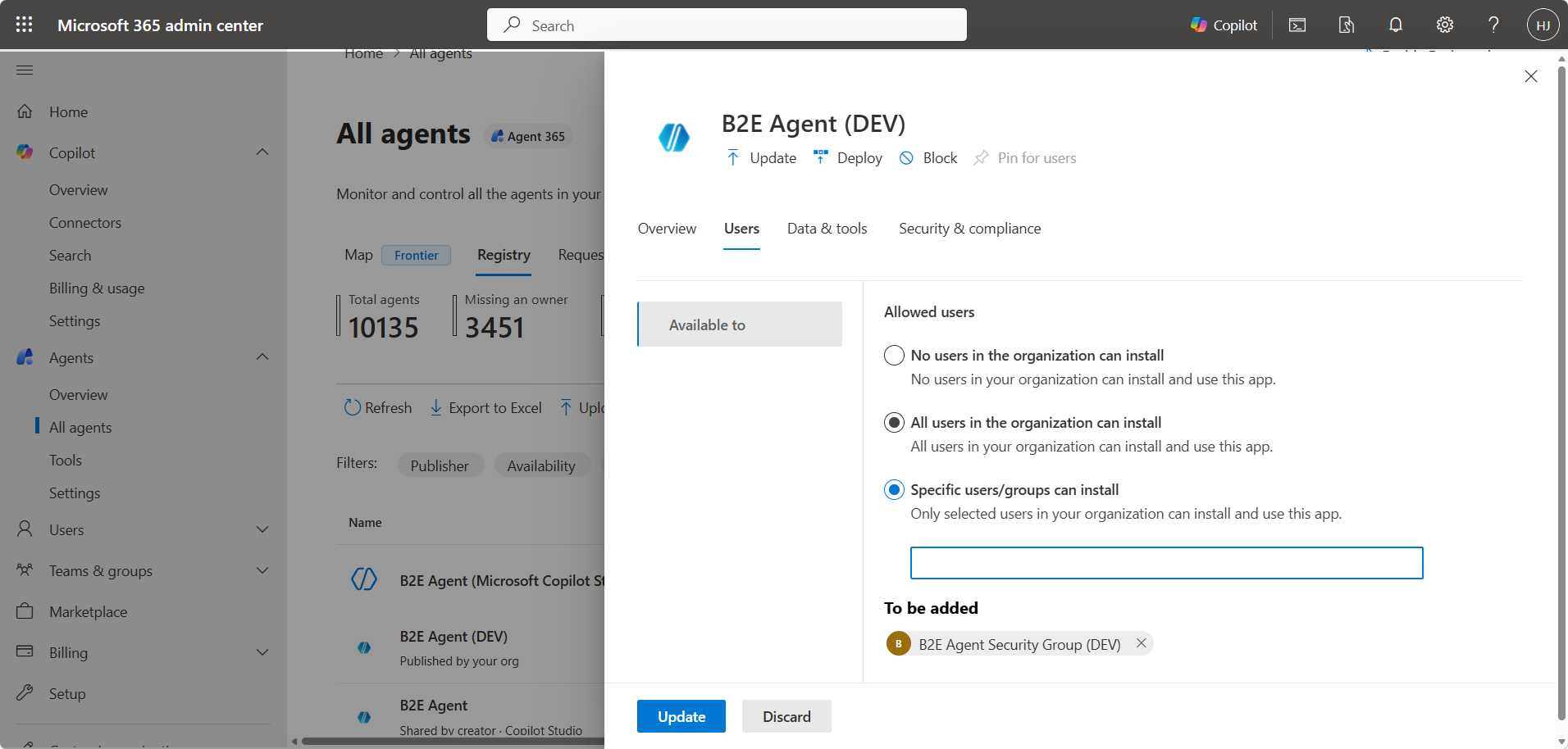 - Pin for users option: Agent appears in M365 Copilot’s agent picker