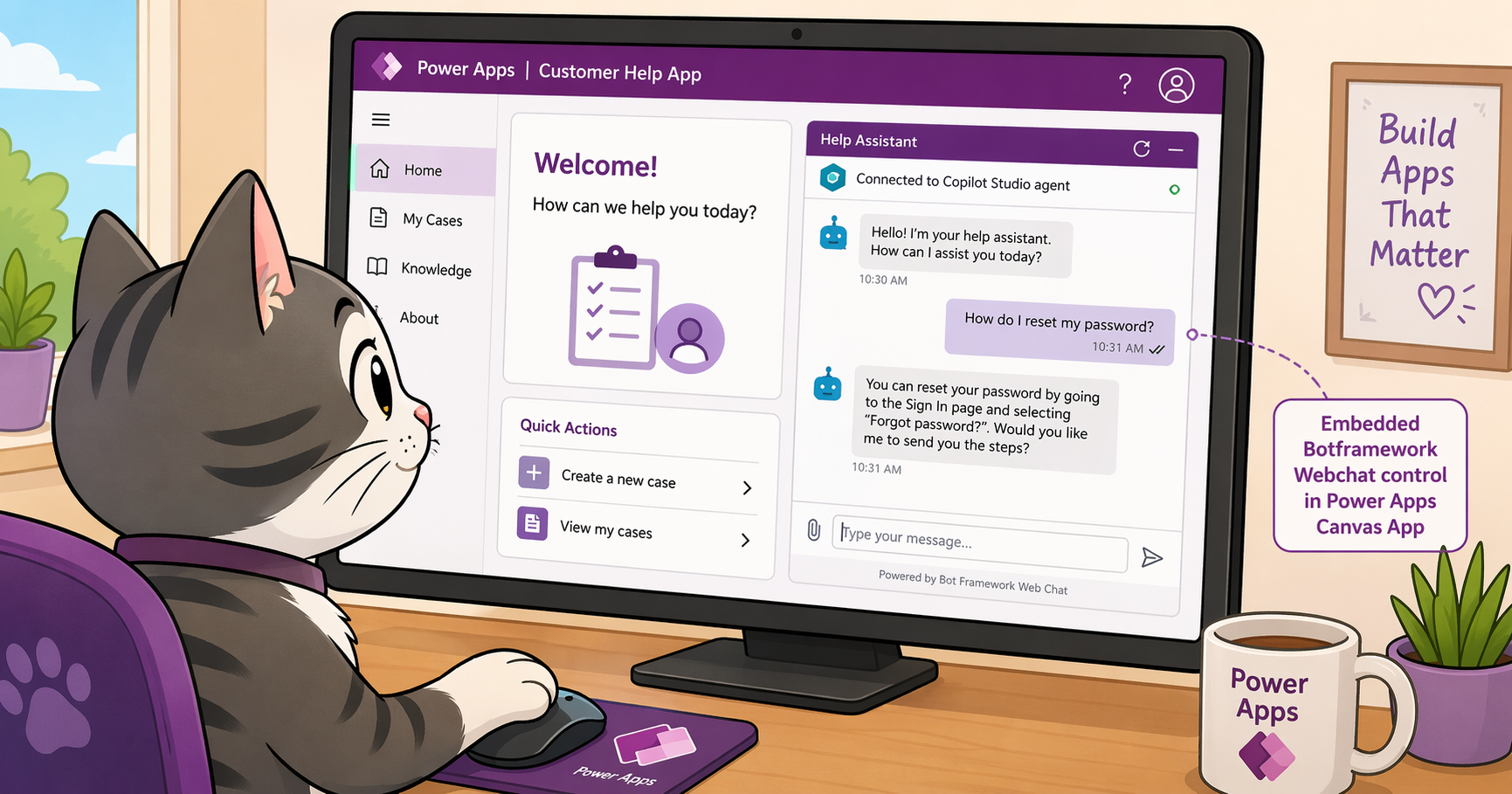 One of the additional benefits: you can style the chat interface to match your app’s look and feel. Since the control is built on Bot Framework WebChat, it supports the same style options that WebChat exposes. Want to match your company’s brand colors, adjust font sizes, or tweak the chat bubble layout? You can. If you’re interested in what’s possible with WebChat styling, the embedding WebChat without JavaScript post covers some of the options, and the ServiceNow embedding field report shows a real-world example of custom-styled WebChat.