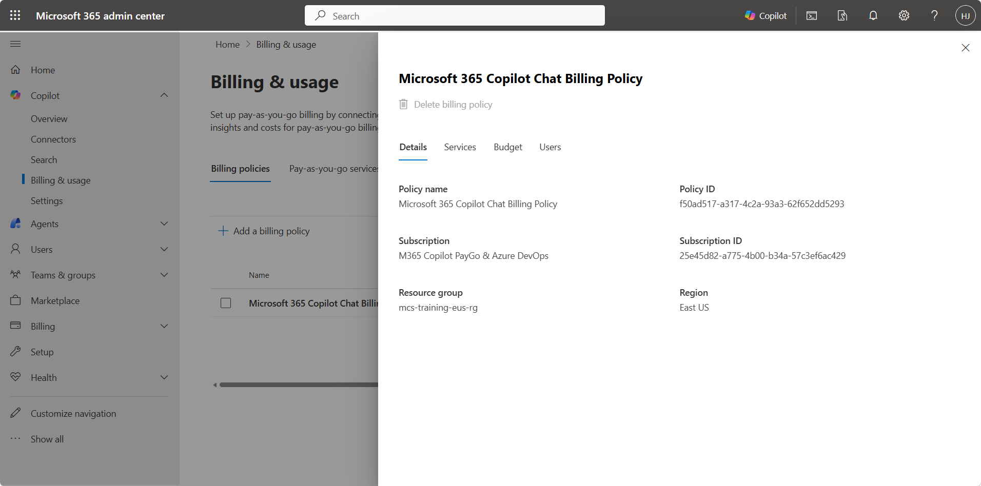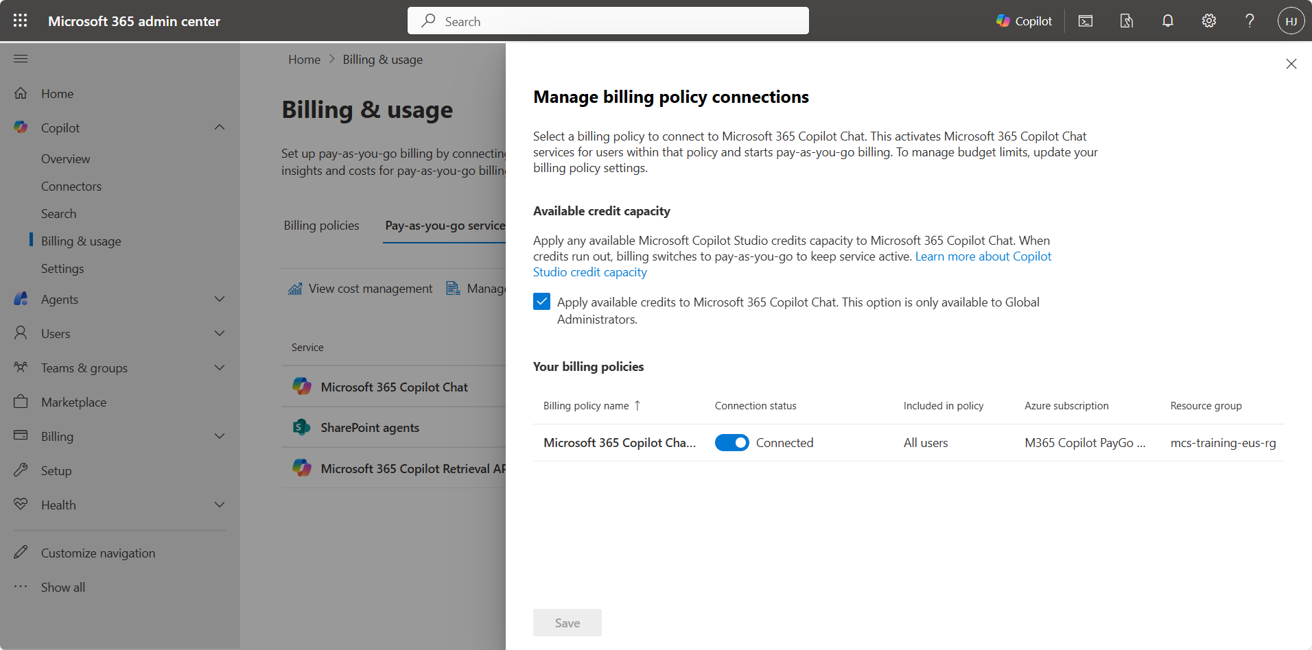 To let Copilot Chat users interact with declarative agents using premium knowledge sources, admins had to set up a pay-as-you-go billing plan in the Microsoft 365 admin center. This required an Azure subscription.