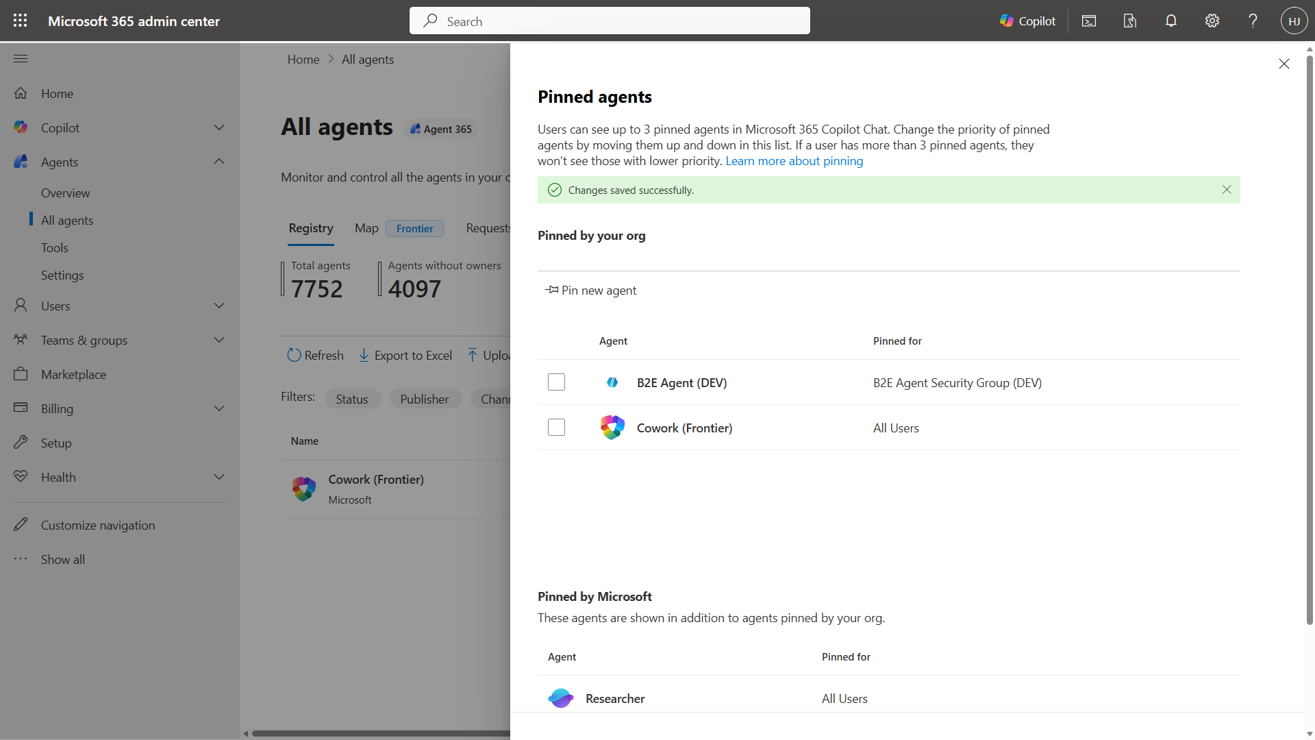Pin agents in the M365 Admin Center for automatic deployment to target user groups
