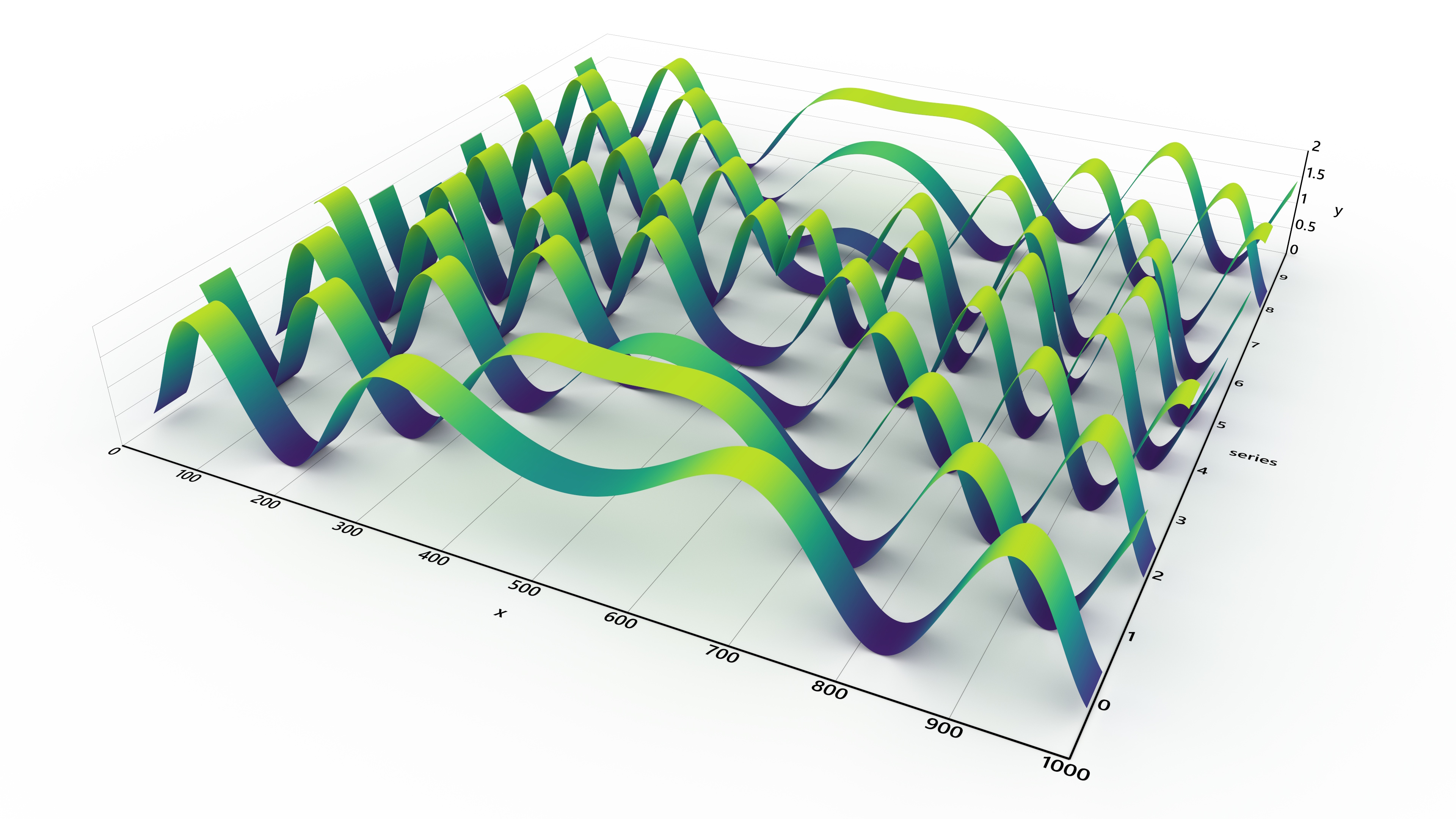 Charts are principally rendered using procedural geometry and path tracing. Supported geometric primitives include rectangles, cuboids, spheres, cylinders, hex prisms, ring segments, and torus segments.