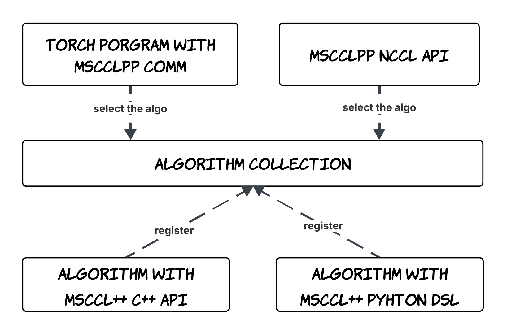 MSCCL++ provides three ways to implement collective algorithms with PyTorch: