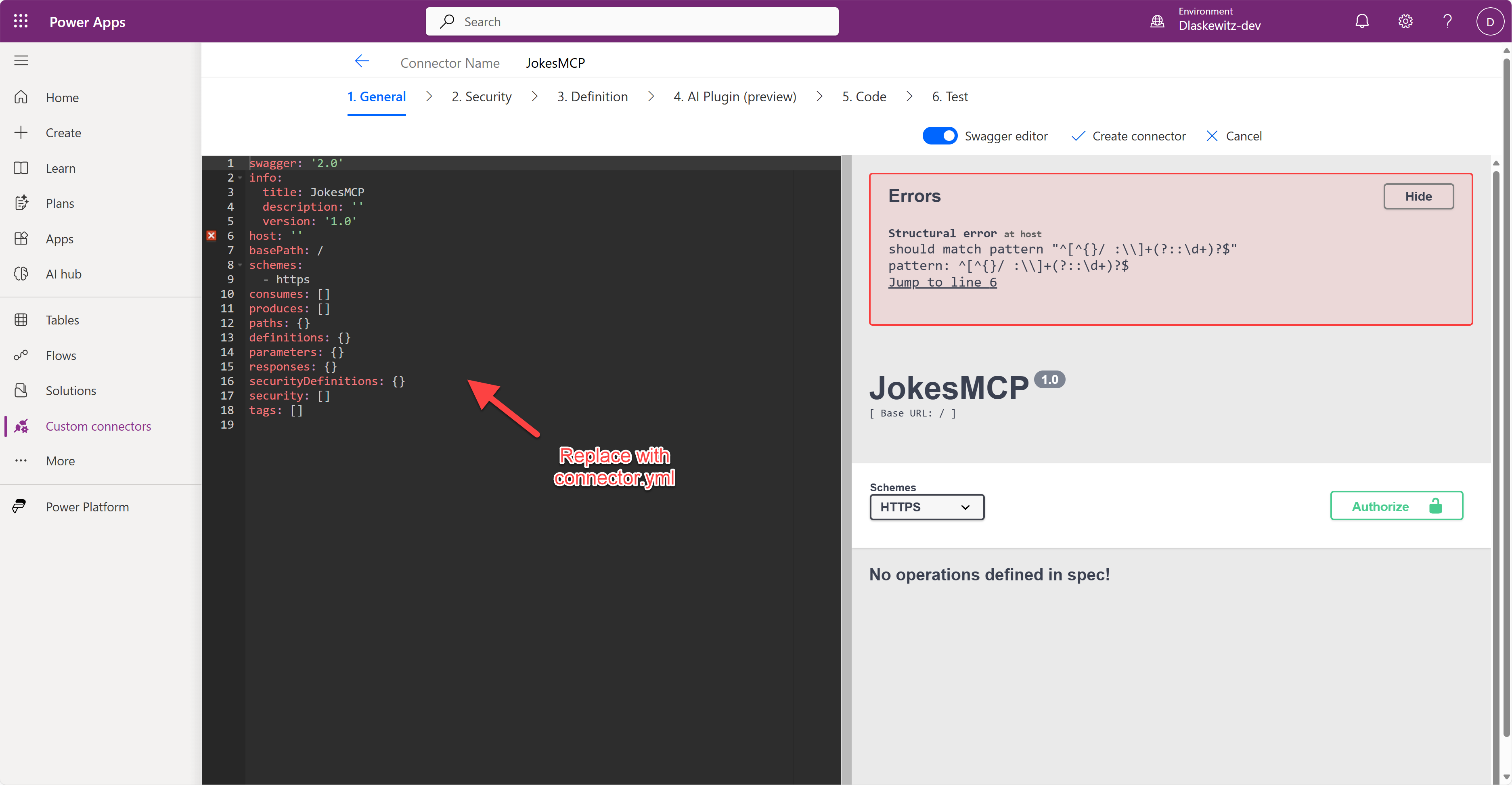 jokes) of the connector you created earlier (see number 1 in the screenshot below)Select the