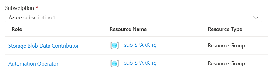 | Roles | Storage Blob Data Contributor Automation Operator |