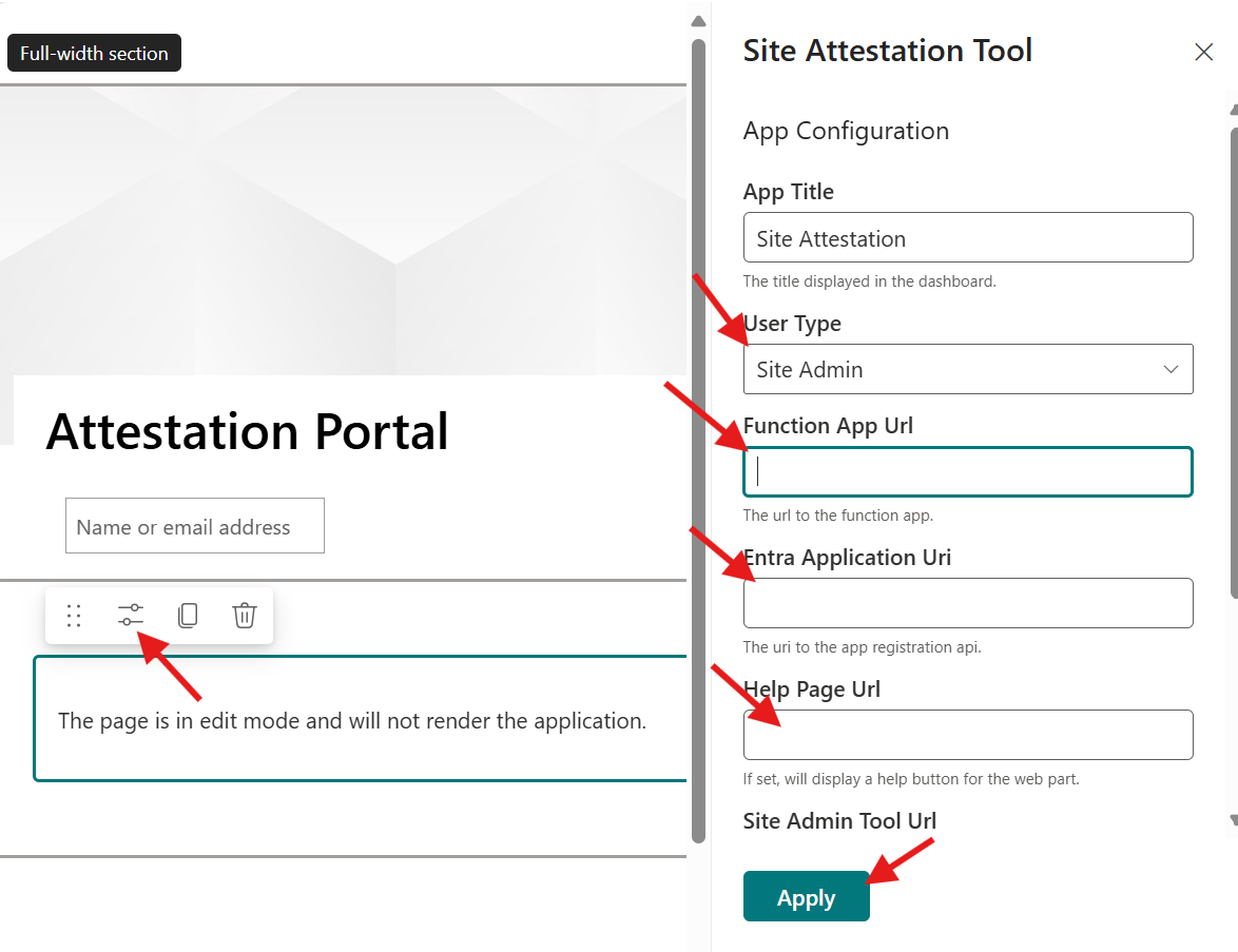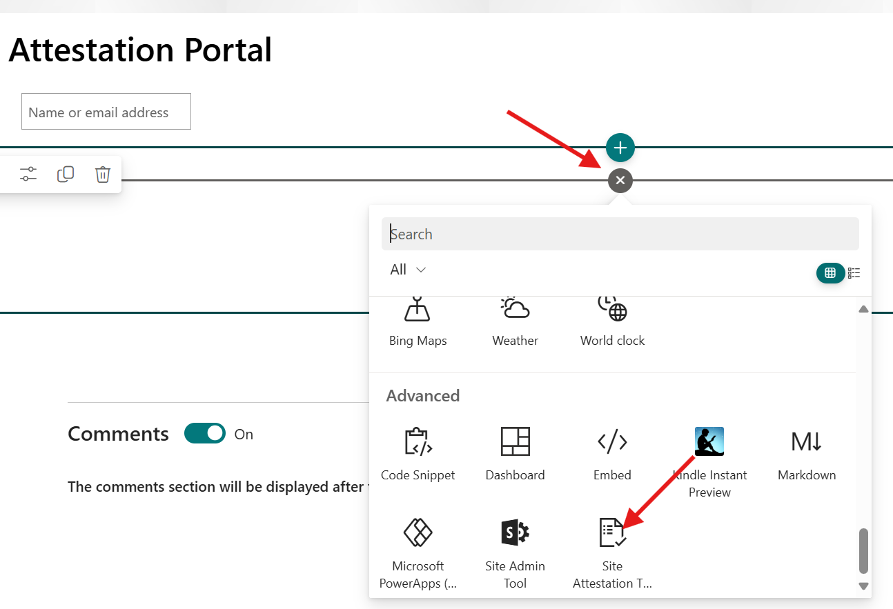 - Add the site attestation webpart to the page
