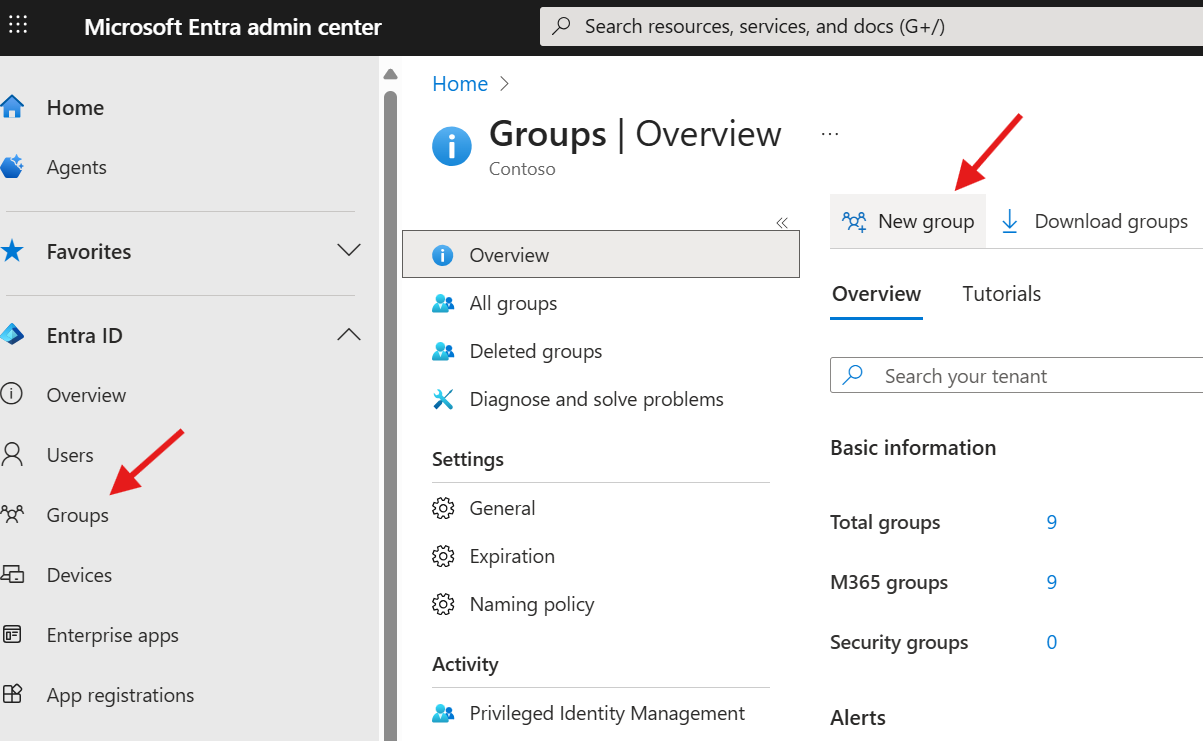 - Select Groups from the left navigation.